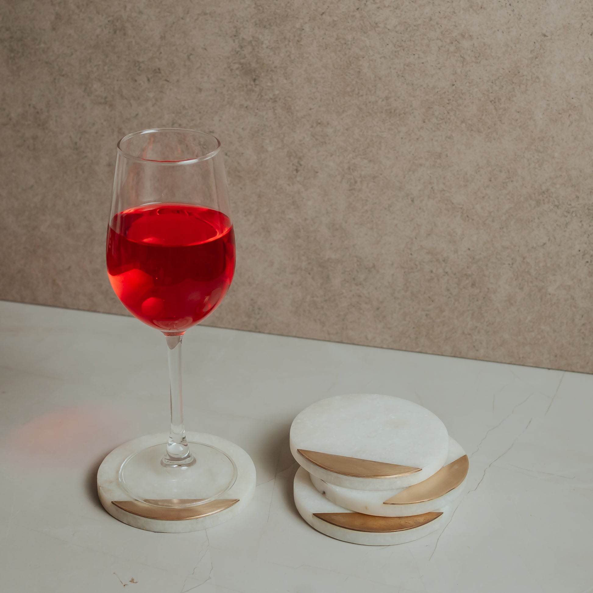Upgrade your table decor with these exquisite white marble brass inlay coasters today!
